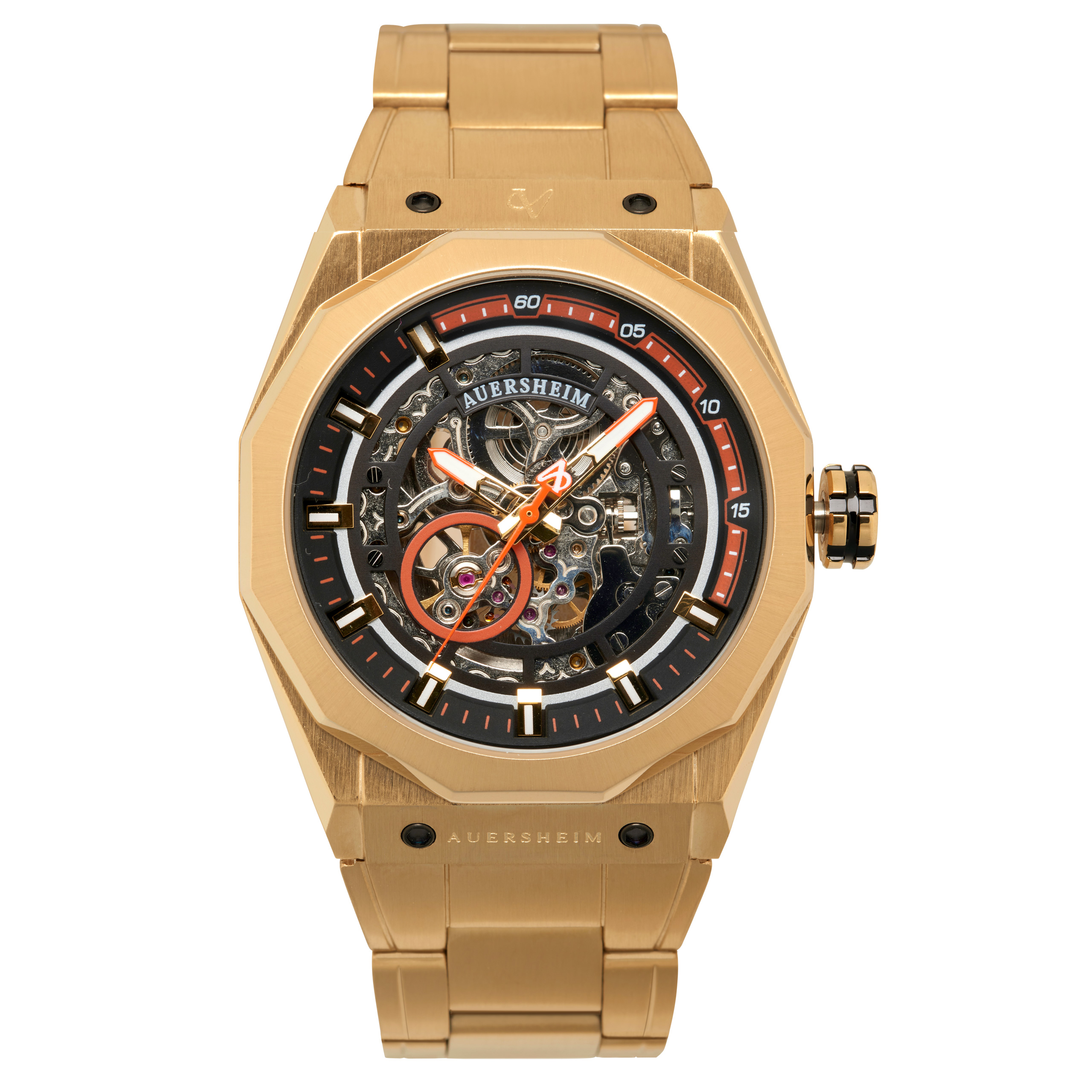 Der mit dem Auersheimlogo verzierte Sekundenzeiger schwebt dabei elegant über allem und vermittelt einem so die Leichtigkeit des mechanischen Antriebs.
