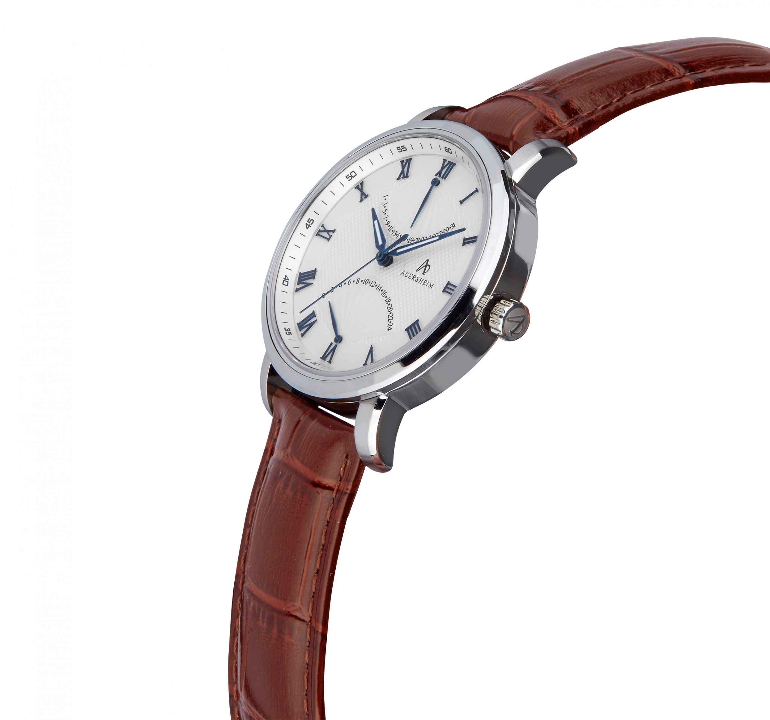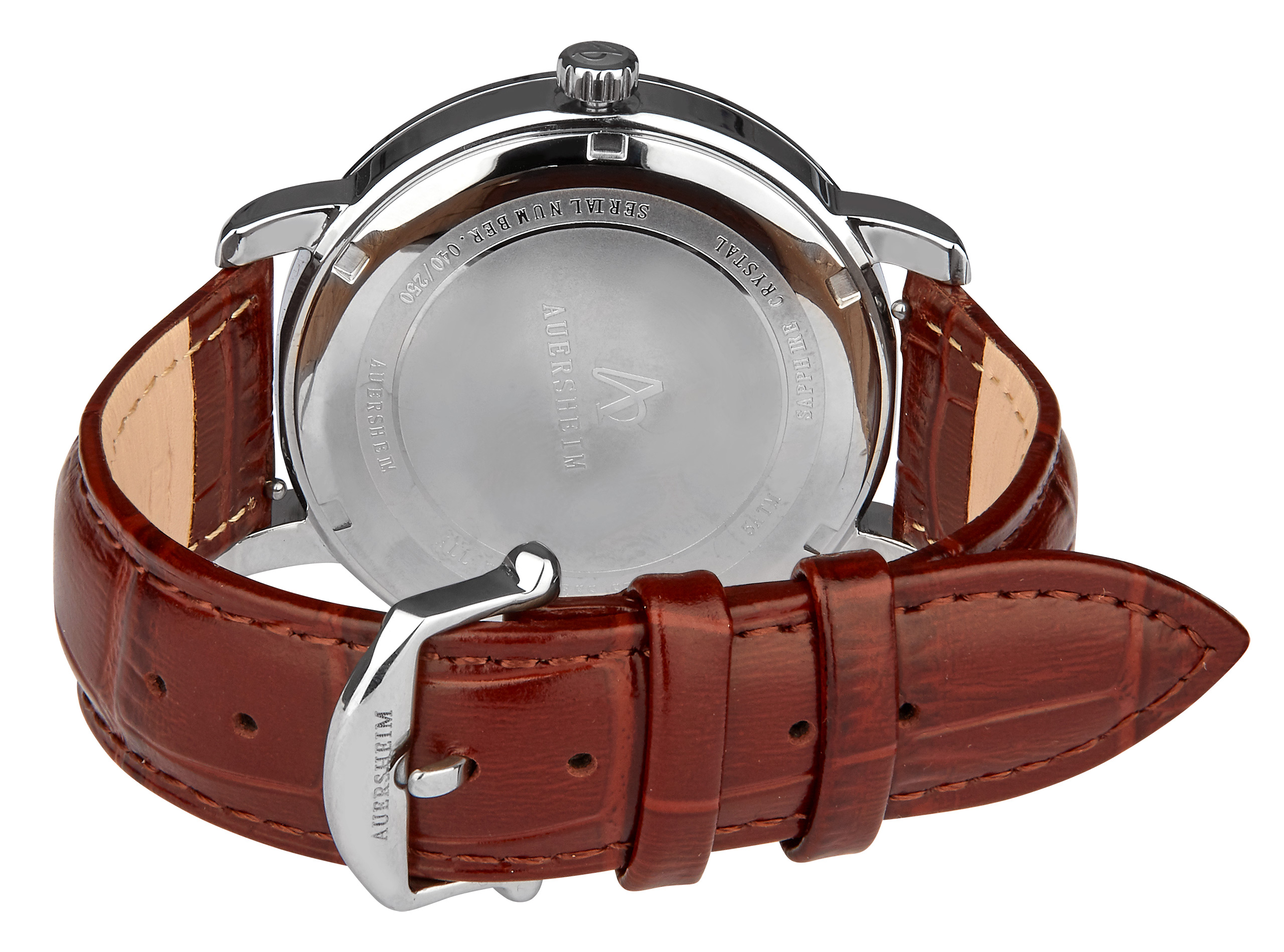 Das Ziffernblatt mit separaten Sekundenzeiger und römischen Indizen ist mit zwei funktionalen Halbkreisen für die Datums und X Anzeige versehen – damit Sie immer eine präzise Auskunft erhalten, egal wo Sie sich befinden. Die Optik darf bei diesen tollen Eigenschaften natürlich nicht zu kurz kommen. Die mechanische Auersheim Uhr Supra begeistert mit Ihren hochwertigen Materialen als besonderer Taktgeber.