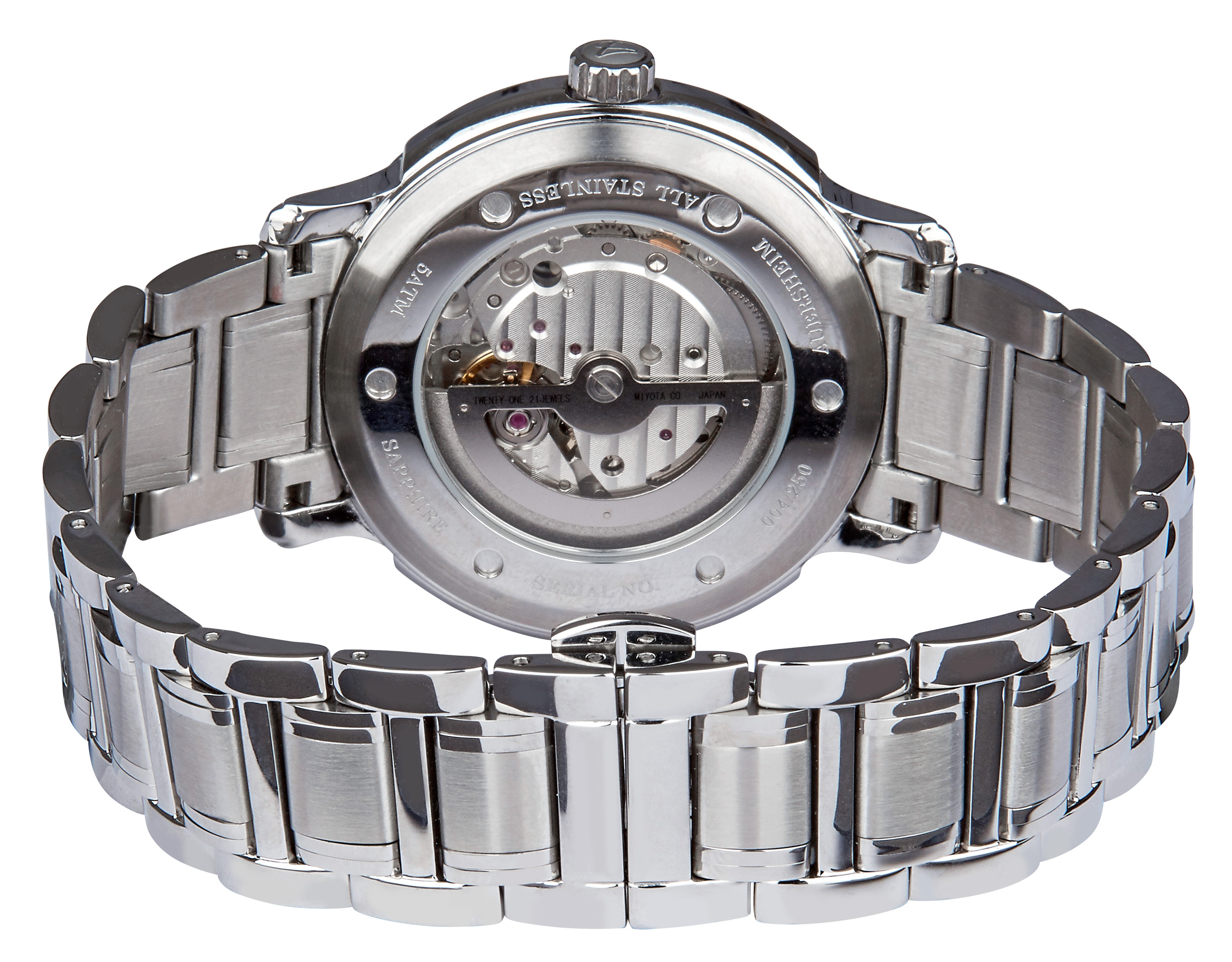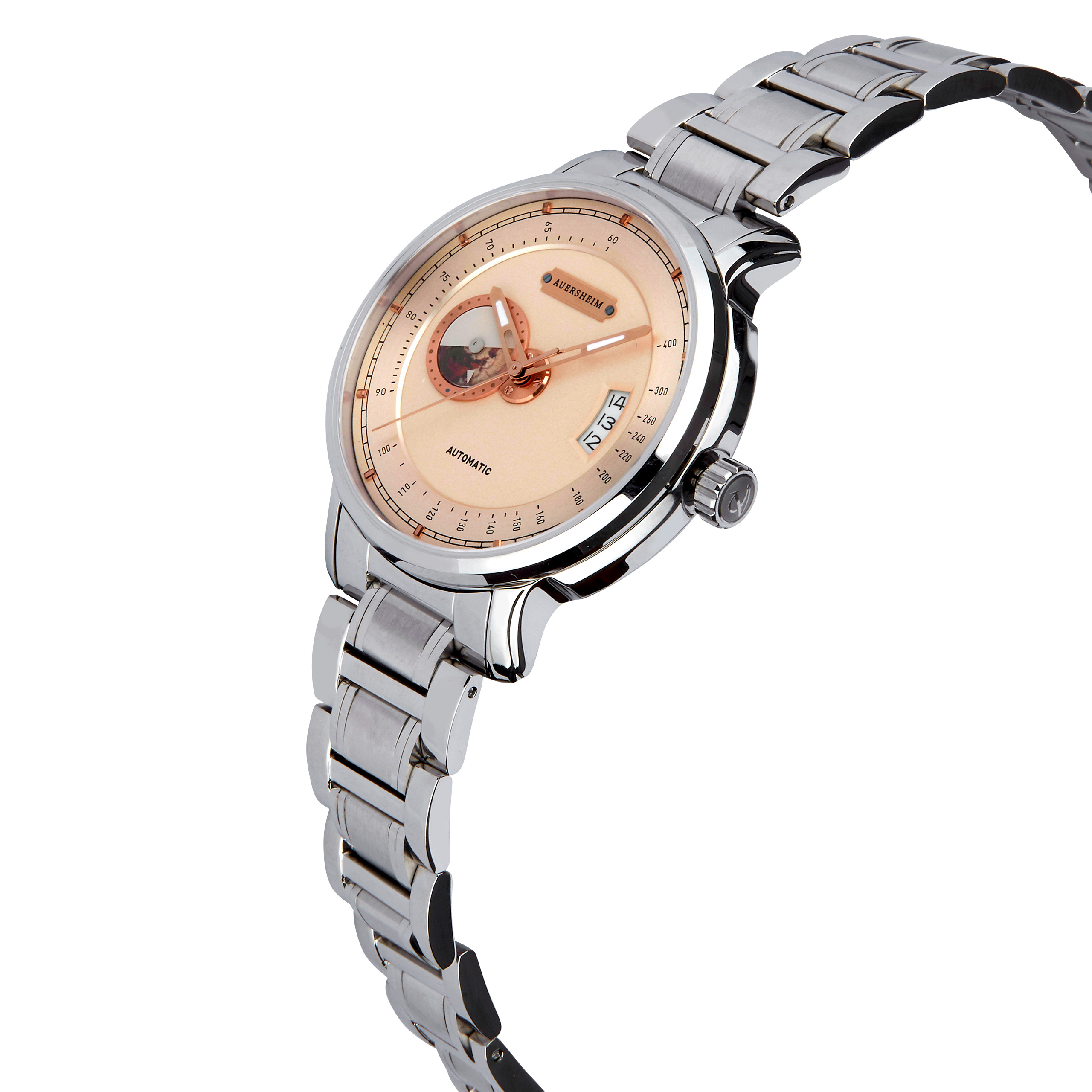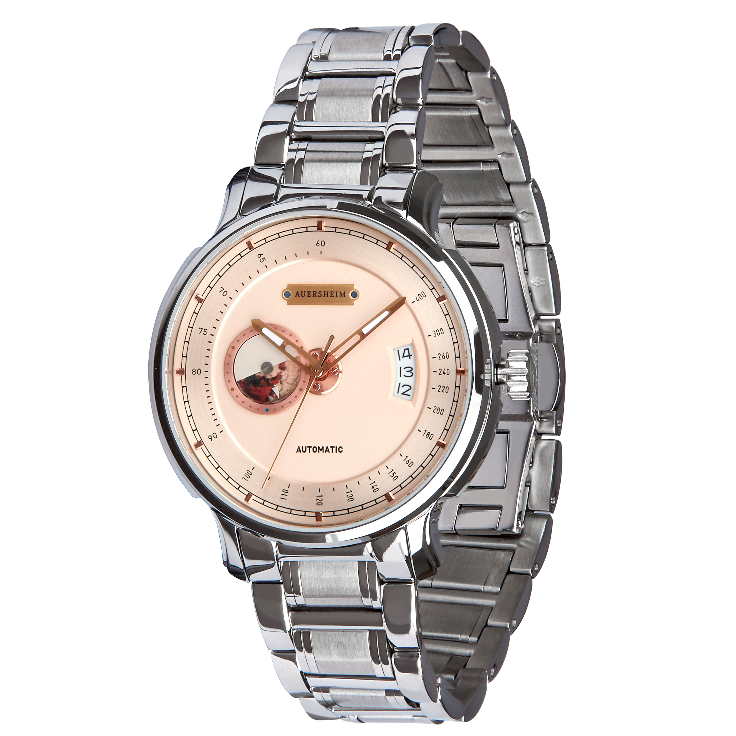 Wie keine andere Uhr von Auersheim verkörpert die Multifunktionsuhr Wei das Außergewöhnliche gepaart mit modernster Technik. Das Ziffernblatt mit Strichindizen im Tachymeter Style wird perfekt durch eine Datum und Tagesanzeige ergänzt. Die Optik darf bei all den modernen Funktionen natürlich nicht zu kurz kommen. Die Automatik Uhr Wei von Auersheim kombiniert hochwertigen Materialien mit Multifunktion. Das Edelstahl Armband in Silber passt sehr gut zu dem silbernen Gehäuse und dem braunen Ziffernblatt.